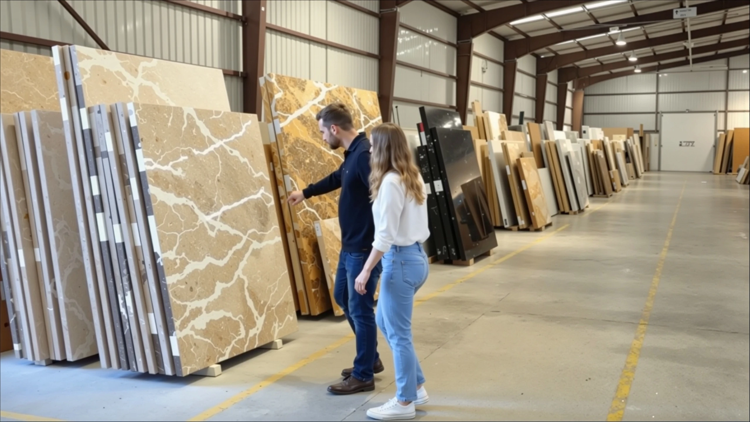 - Understand that natural stone (marble, granite, quartzite) contains pits, fissures, epoxy fills, subtle shading, and inconsistent sheen hard to detect when slabs are standing up and displayed under bright light.